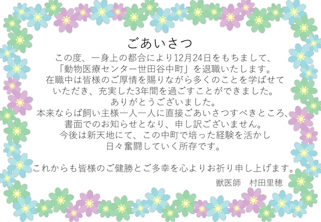 【「動物医療センター目黒中央」開院のお知らせ】